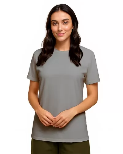 Camiseta Lisa de Poliéster Cinza Claro